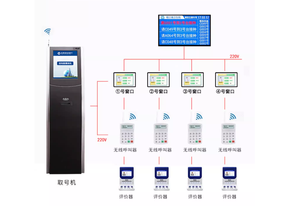 ③維護簡單:沒有分線盒、通信控制器、中繼器,沒有485總線拉死情況,取號機、叫號器,窗口屏都是一個獨立無線設備,不存在排查線路上的問題而煩惱,節省時間,減少維護成本